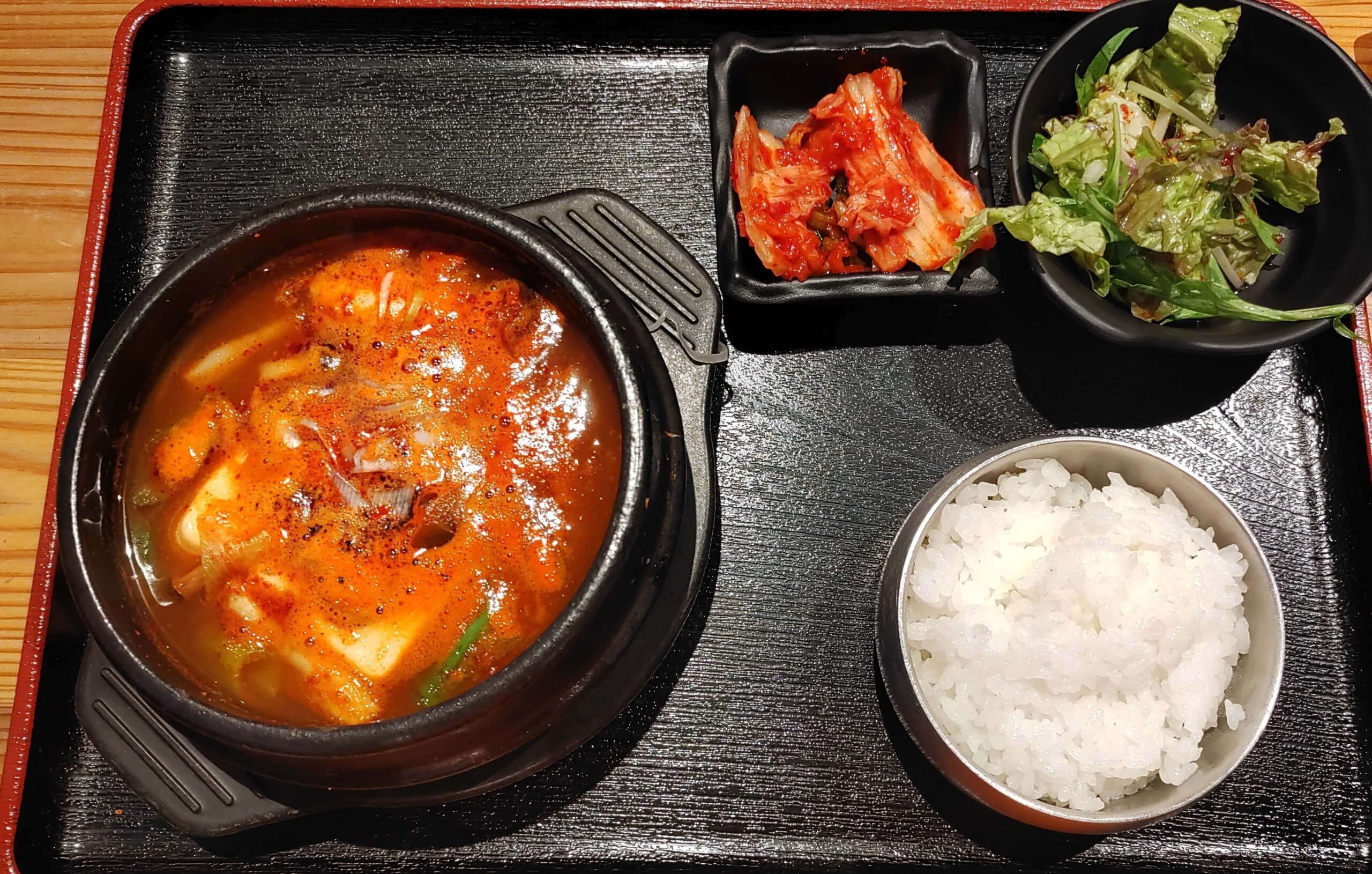 という感じで今回は、東京都港区浜松町にある 韓国家庭料理 明洞|クムデジ で スンドゥブチゲ をいただきました。